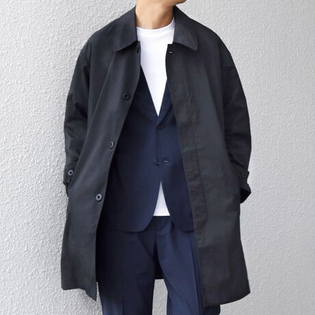 ステンカラーコートをベースに、程よくゆとりを持たせたシルエットのアウター。