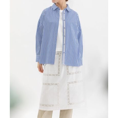 きちんと感のある、王道のロンドンストライプシャツ。主張のあるストライプ柄に、メンズドレスシャツ由来の端正さを取り入れ、カジュアルなスタイリングにも自然と品のよさをプラスしてくれます。背中のさりげないスワン刺繍や、下前立てのトーションレーステープがさりげないポイントに。