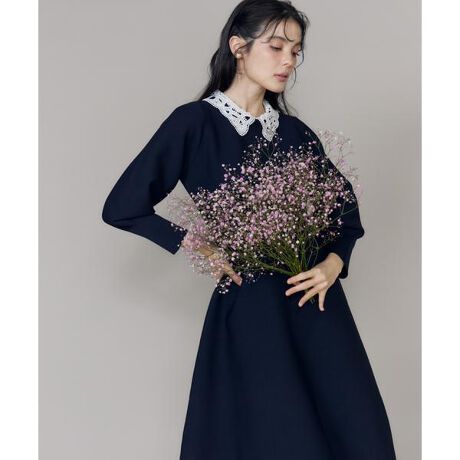 ■デザイン立ち居振る舞いまで美しく魅せるエレガントなニットワンピース。華やかなレース衿が上品なアクセントとなり、あらゆるシーンに馴染む洗練されたデザインです。衿は取り外し可能で、気分やシーンに合わせた着こなしを楽しめます。ハイウエストでメリハリをつけたフィット&フレアのシルエットは、女性らしいラインを際立たせ、スタイルアップ効果も抜群。1枚でコーディネートが完成する袖付きタイプで、季節の変わり目にも活躍します。さらりとしたタッチのポリエステル素材を使用しているため、オールシーズン快適にご着用いただけるのも嬉しいポイントです。■素材発色が良く、伸縮性に富んでおりスポンディッシュで柔らかく、軽量なのが特徴です。編地のパーツの段階で一度蒸気で縮める工程を経ています。そのためこれ以上縮むことがなく、水で手洗いであれば家庭洗濯が可能です。・水洗い可・襟取り外し可・バックボタンあり■サンプル撮影商品画像の商品はサンプルです。実際の商品とはサイズや色味、素材、デザイン等の仕様が若干変更になる場合がございます。■カラーについては、可能な限り実際の商品に近いカラーにて撮影をおこなっておりますが、照明の関係により実際の製品とは色味が違って見える場合があります。またパソコン・スマートフォンなどの環境により、若干製品と画像のカラーが異なる場合もございます。現物と画像のカラー差異については返品理由となりませんので、予めご了承ください。■サイズ表記はあくまで目安となります。