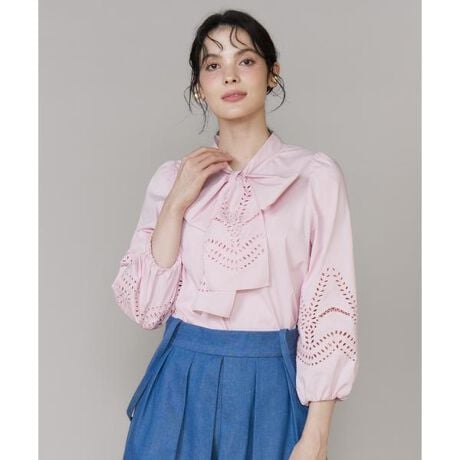■デザイン程よい張り感とストレッチ性のある、シワになりにくい生地に、オリジナル柄のボーラーレースを使用。丁寧に刺繍したスカラ柄をあえてスカラ仕様にせず、上品に仕上げました。浅めのVネックから続くボウタイ先や袖口のレース柄が動くたびに華やかさを引き立てます。裾はたっぷりとした分量で、イン・アウトどちらでも美しいシルエットが決まり、幅広いボトムとバランスよく着こなせます。■素材程よい張り感とストレッチ性のある、シワになりにくい生地に、オリジナルの柄でボーラーレースにしたファブリック。1針1針丁寧に刺繍したスカラ柄をあえてスカラ仕様にせず使用しております。・後ろファスナーあり・水洗い可※ピンクはWEB限定・POPUP限定カラーになります。■サンプル撮影商品画像の商品はサンプルです。実際の商品とはサイズや色味、素材、デザイン等の仕様が若干変更になる場合がございます。■カラーについては、可能な限り実際の商品に近いカラーで撮影をおこなっておりますが、照明の関係により実際の製品とは色味が違って見える場合があります。またパソコン・スマートフォンなどの環境により、若干製品と画像のカラーが異なる場合もございます。現物と画像のカラー差異については返品理由となりませんので、予めご了承ください。■サイズ表記はあくまで目安となります。
