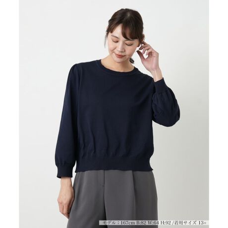 シンプルながらも洗練された雰囲気が漂う、七分袖のニットセーター。すっきりとしたクルーネックと、手元に抜け感を演出する七分袖が、軽やかで上品な印象を与えます。どんなボトムスとも合わせやすい無地のデザインは、着回し力も高く、日常の様々なシーンで活躍します。自分らしいスタイルをアップデートしてくれる、大人のためのベーシックアイテムです。