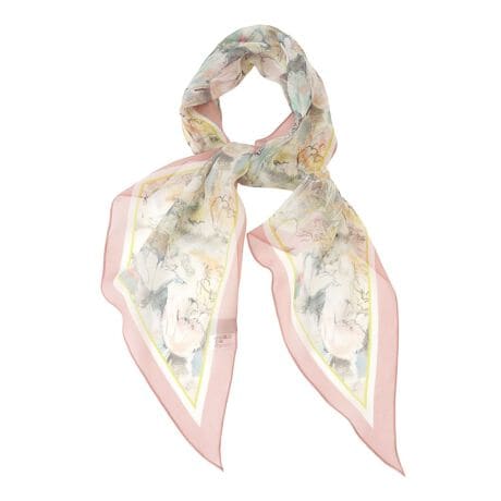 春の装いに華やかさを添える、美しい花柄のスカーフ。首元に巻いたり、肩から掛けたり、バッグに結んだりと、一枚で様々なアレンジをお楽しみいただけます。柔らかな素材が心地よく、日差し対策や肌寒い時の温度調節にも役立ちます。シンプルなコーディネートにプラスするだけで、ぐっとエレガントな印象に変わる便利なアイテムです。