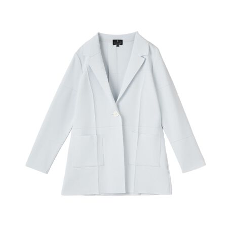 アセテートとナイロンを使用した、滑らかな肌触りのニットジャケットです。上品な光沢と程よい膨らみを持ち、空気を含んだような軽やかな着心地を実現しました。