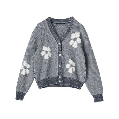 フラワー Vネックカーディガン【産地ナブル】