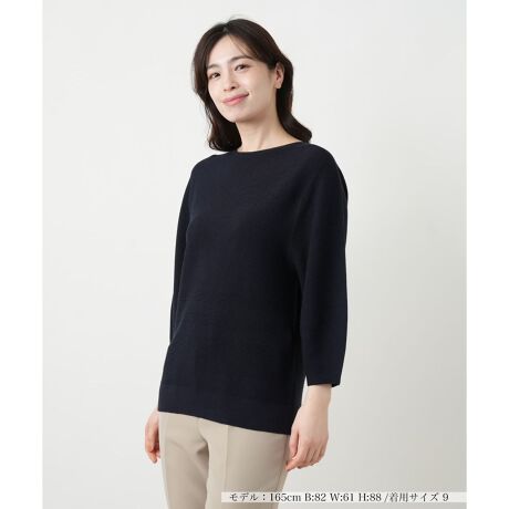 ポリエステルとコットンの混紡素材を使用した、春先に重宝するクルーネックニットトップス。さらりと軽やかな肌触りと程よいハリ感が、洗練された大人のスタイルを演出します。身頃や袖口に施された繊細なラインの切り替えがデザインのアクセントになり、ふんわりとしたボリュームスリーブが女性らしく柔らかな印象を後押しします。シンプルながらもディテールにこだわりが光る一枚は、ボトムスを選ばず幅広いコーディネートで活躍します。