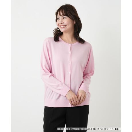 アンサンブルとしてもお楽しみいただける、ベーシックな長袖カーディガン。すっきりとしたノーカラーの丸首デザインは、どんなインナーとも相性が良く、着回し力に優れています。季節の変わり目の羽織りものとして、また夏場の冷房対策としても活躍。ワードローブに一枚あると重宝する、洗練された大人のための定番アイテムです。