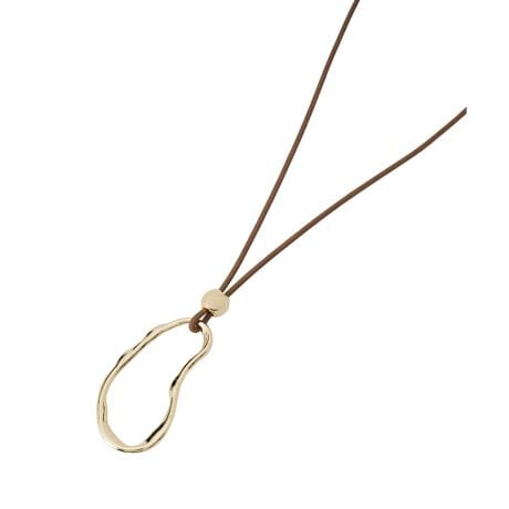 クラフト感のある歪んだオーバルのモチーフが胸元にモダンなアクセントを添えるコードネックレス。リングはシンプルながらも存在感があり、大人のカジュアルスタイルを上品に格上げします。スライダーで長さを自在に調節できるため、着こなしに合わせた絶妙なバランスで楽しめるのも魅力。軽やかなコード使いは季節を問わず重宝し、いつものコーディネートにさりげない個性をプラスしてくれそうです。