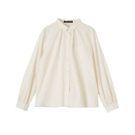 清潔感あふれるコットンローンの生地に、立体的な小花柄刺繍が施された、長袖ブラウス。