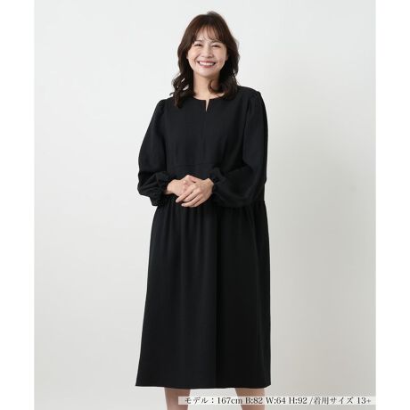 デザイン性の高い襟元がアクセントになった、エレガントな長袖ワンピース。伸縮性に優れた素材を使用しており、美しいシルエットと快適な着心地を両立しました。一枚で装いが完成するのはもちろん、ジャケットを羽織っても華やかな印象を保ちます。ボディラインを拾いすぎない絶妙なサイジングで、リラックス感がありながらも上品に着こなせる一着です。