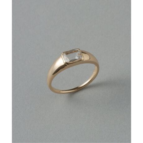 シグネットのような幅広のアームにバゲットカットのホワイトトパーズをあしらい、モダンな印象に。