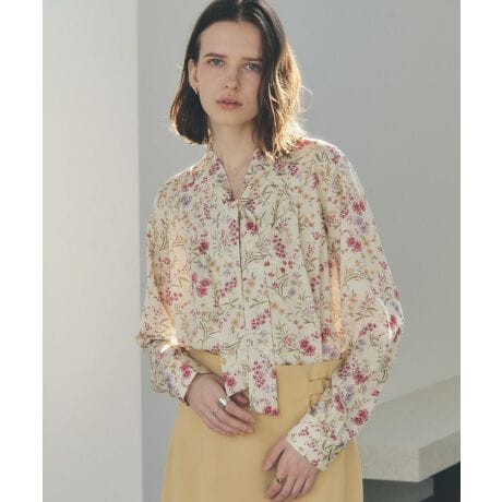 ボタニカルフラワー柄が上品に映えるブラウス。