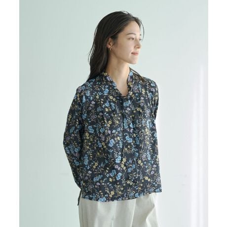 ボタニカルフラワー柄が上品に映えるブラウス。