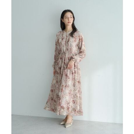 軽やかな透け感とシャーリングが作る上質な存在感が人気のワンピース。ぼかしフラワー柄が上品な抜け感を生みます。