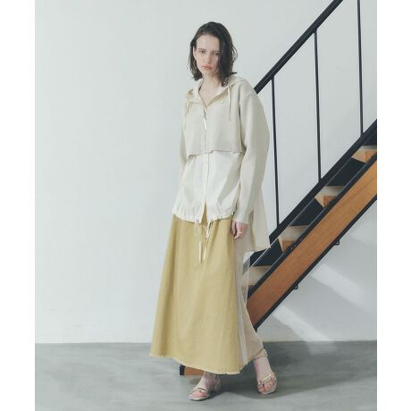 チノとチュールの組み合わせが軽やかな抜け感を演出するロングスカート。