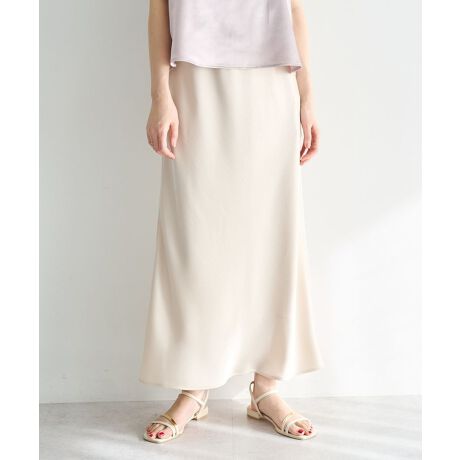 広がりすぎないフレアシルエットは腰まわりをすっきりと見せつつ歩くたびに美しいドレープを描きます。