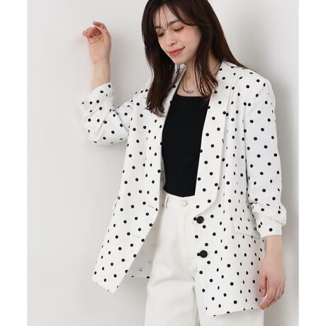 袖口はたくし上げたような立体感のあるデザインで、袖丈をやや短めに設定することで軽さをプラス。シングル合わせのロング丈は、さらっと羽織るだけでこなれたムードをつくります。フェミニンで華やかなランダムドットプリントと、ベーシックでシャープなブラックの2色展開。オンにもオフにも活躍する、汎用性の高い一枚です。