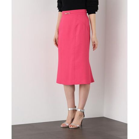 ブッチャー組織の素材で仕立てた、メタルパーツがポイントになったのタイトバックメードスカート。中空糸ならではの驚くほどの軽さに、ブッチャー特有の表面の凹凸感が加わり、上品な立体感を生み出します。フロントはすっきりとしたタイトシルエットで、腰まわりをきれいに見せる切替デザインを採用。後ろ裾にはマーメイド風のフレアパネルを配し、歩くたび控えめに揺れる華やかさと足さばきの良さを両立しています。