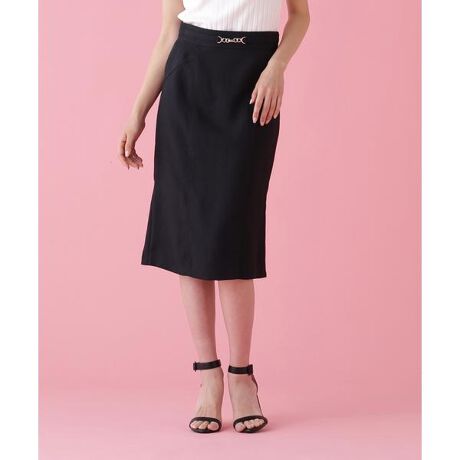 ブッチャー組織の素材で仕立てた、メタルパーツがポイントになったのタイトバックメードスカート。中空糸ならではの驚くほどの軽さに、ブッチャー特有の表面の凹凸感が加わり、上品な立体感を生み出します。フロントはすっきりとしたタイトシルエットで、腰まわりをきれいに見せる切替デザインを採用。後ろ裾にはマーメイド風のフレアパネルを配し、歩くたび控えめに揺れる華やかさと足さばきの良さを両立しています。