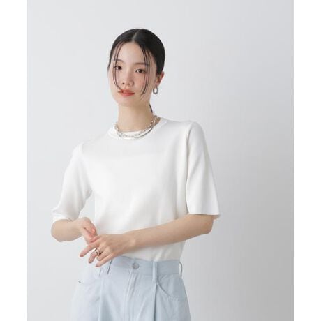 ご好評の洗濯機洗い可・UVカット・接触冷感の機能性が揃った半袖ニットが、今年も新色追加で登場!サイズやデザインはそのままに、Tシャツのように着れてキレイめ見えする一着。ご自宅でケアできる素材感も魅力です。