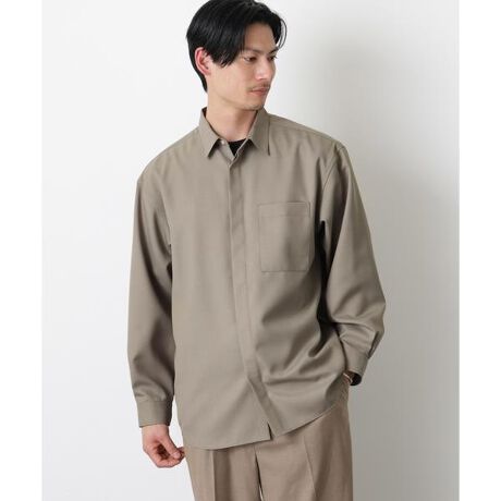 ウール調のエレガントなレギュラーカラーシャツ。様々なスタイルに合わせやすいシンプルなデザインで、シャープな衿先がエレガントな印象を与える一枚。ボタンを開けて羽織れば軽アウターとしても活躍。季節の変わり目におすすめのアイテムです。