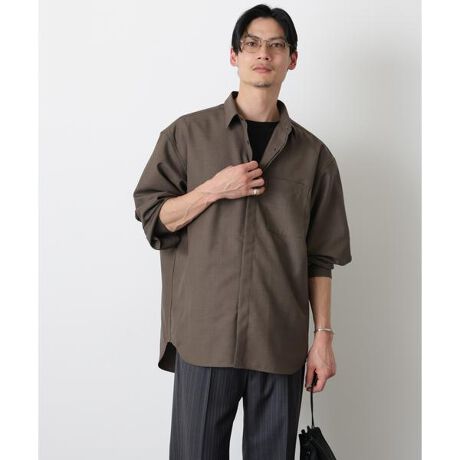 ウール調のエレガントなレギュラーカラーシャツ。様々なスタイルに合わせやすいシンプルなデザインで、シャープな衿先がエレガントな印象を与える一枚。ボタンを開けて羽織れば軽アウターとしても活躍。季節の変わり目におすすめのアイテムです。