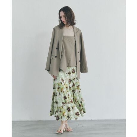 水彩タッチのフラワー柄が目を引くマーメイドスカート。