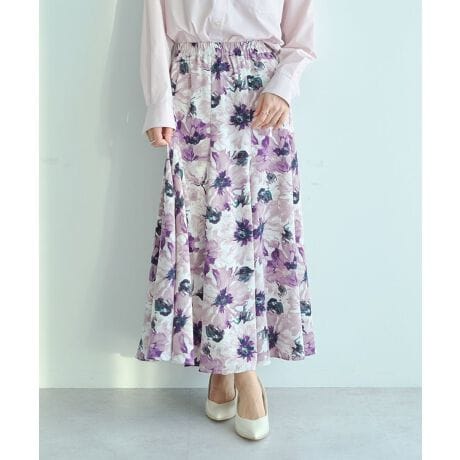 水彩タッチのフラワー柄が目を引くマーメイドスカート。