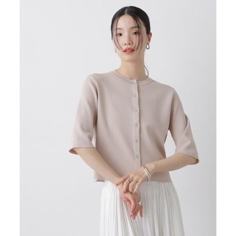 ご好評の洗濯機洗い可・UVカット・接触冷感の機能性が揃った半袖カーディガンが、今年も新色追加で登場!釦を留めてプルオーバーとして着たり、カットソーやノースリーブアイテムの羽織りとしても活躍してくれるので、端境期の春ニットとして重宝します。