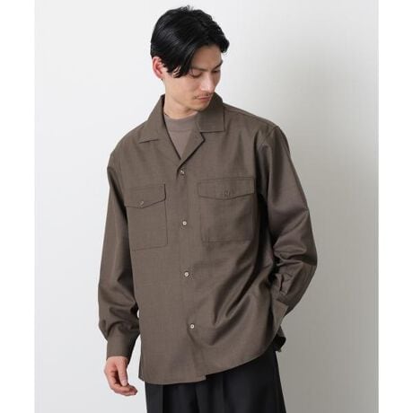 ウール調のエレガントなオープンカラーシャツ。様々なスタイルに合わせやすいシンプルなデザインで、ボタンを開けて羽織れば軽アウターとしても活躍。季節の変わり目におすすめのアイテムです。