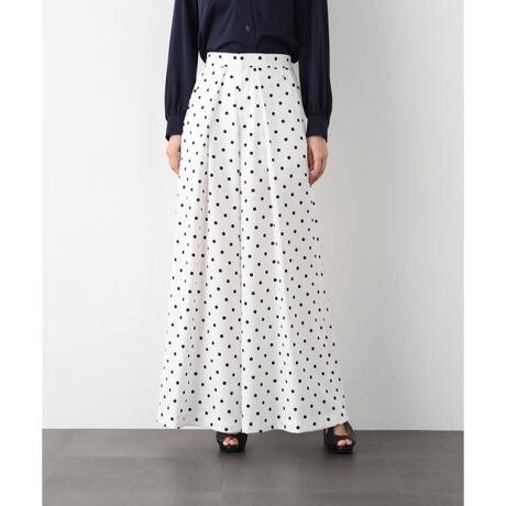 ウエストから裾に向かってタックプリーツを入れ、縦ラインを強調したワイドパンツ。サイドにもタックを施すことで、動きのある豊かな表情をプラスしています。歩くたびにプリーツが揺れ、さらに女性らしいニュアンスを演出します。ハイウエストデザインがスタイルアップも叶い、後ろウエストはゴム仕様でリラックスした履き心地に。フェミニンで華やかなランダムドットプリントと、ベーシックでシャープなブラックの2色展開です。