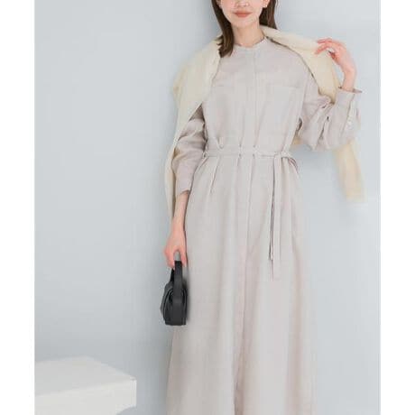 麻のようなナチュラルな表情と、ドライな風合いを兼ね備えた合繊素材を使用。 ざっくりとしたリアルなフシ感が涼しげで、これからの季節を心地よく彩ります。シワになりにくい素材のため、長時間の着用でも清潔感を損なわず知的な印象をキープ。 ウエストマークをすれば品格のあるワンピースとして通勤や特別なシーンにも活躍し、袖のボタンとタブを使って5分袖にアレンジすれば、より軽快でリラックスした表情を楽しめます。1枚で着こなすのはもちろん、前を全て開けてシャツ羽織としてレイヤードするのもおすすめ 淡いトーンのパンツを合わせると、こなれ感のある都会的なデイリースタイルに仕上がります。 ご自宅で洗濯可能なイージーケア仕様も、忙しい日常に寄り添う嬉しいポイント◎