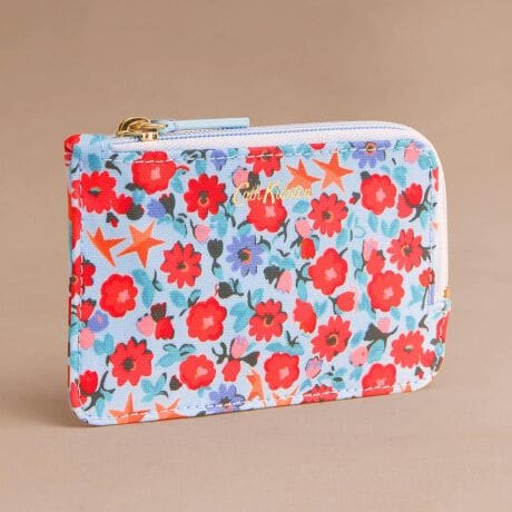 マットコーティングされたコットン製のカード&コインパース。ジップ開閉で内側と外側にカード入れがあり便利です。【Folding Star Ditsy】優美な星々が繊細な花柄を背景に踊っているかのような、魅力的なプリントが特徴です。