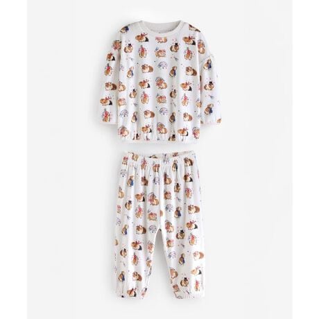 Cath Kidston のフリースパジャマで、暖かく包み込みましょう。非常に柔らかな生地で作られたこの贅沢なセットは、長袖のトップスとゴムウエストのボトムスが特徴です。抱きしめたくなるようなモルモットたちが主役のGuinea Pigプリントはスカーフ、蝶ネクタイ、メガネを身につけた小さな仲間たちのユニークな表情と個性がそれぞれ輝いています。