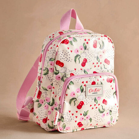 ミニバックパックはクラシックバックパックの全ての機能を備えながら、より小さくコンパクトにデザインされています。調節可能なストラップ付きで、小さいながらたっぷり入ります。ネームカード付きで取り間違いを防いでくれます。手描きで描かれたチェリー柄は、まるで1950年代のヴィンテージ品から抜け出てきたような、懐かしくも魅力的な雰囲気を醸し出しています。