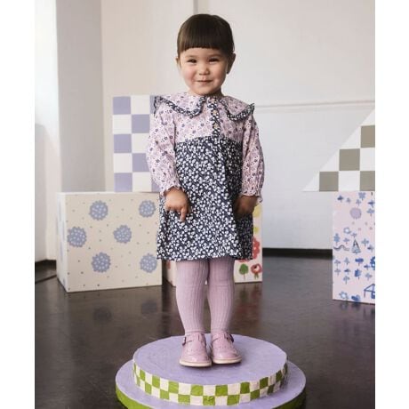 キッズ ロングスリーブ ワンピース Multi Navy Ditsy