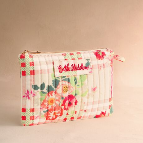 ふっくらとしたキルトコットン素材で、毎日持ち歩きたくなる可愛らしさ。ジッパー付きで安心。バッグに簡単に取り付けられるフックが付いています。