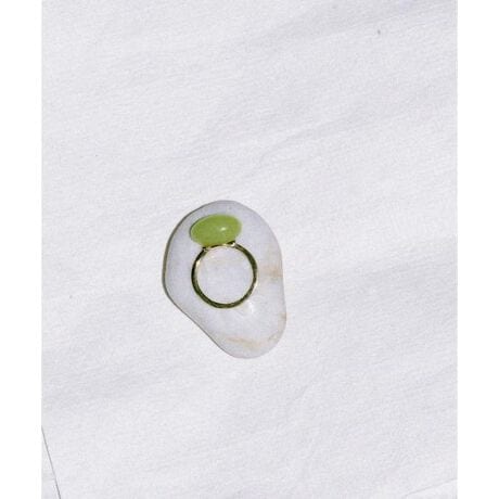 オーバル型にカットしたイエロージェイドを主役にしたリング。