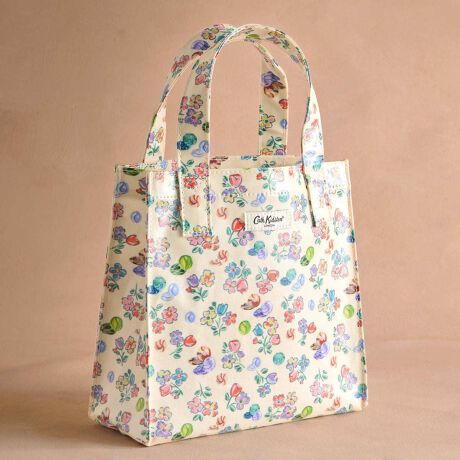 Cath Kidstonで人気のブックバッグの使いやすいスモールサイズ。特徴的なシルエットはそのままに、より小さく便利なサイズです。コーティングされた光沢のあるコットンは拭くことができ、お手入れも簡単です。【Marble Ditsy】繊細な手描きのビー玉(マーブル)と、生き生きと咲き誇る花々が組み合わさった華やかなプリント施されています。