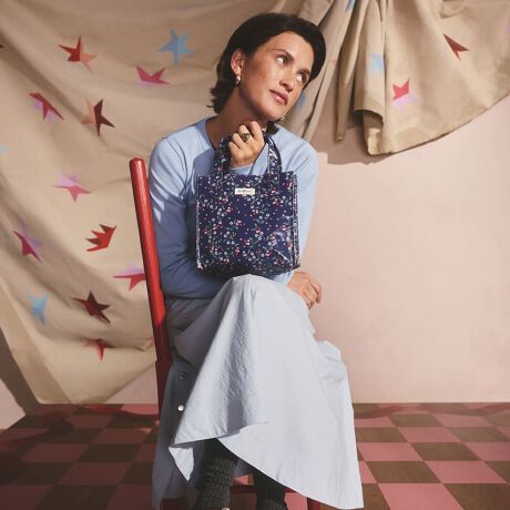 Cath Kidstonで人気のブックバッグの使いやすいスモールサイズ。特徴的なシルエットはそのままに、より小さく便利なサイズです。コーティングされた光沢のあるコットンは拭くことができ、お手入れも簡単です。【Trailing Star Sprigs】花々の間を星が舞う、チャーミングなプリントが特徴です。