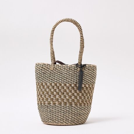 アバカ(マニラ麻)を印象的な縦長フォルムに編み上げたThe Bagmati(ザ バグマティ)のかごバッグ。