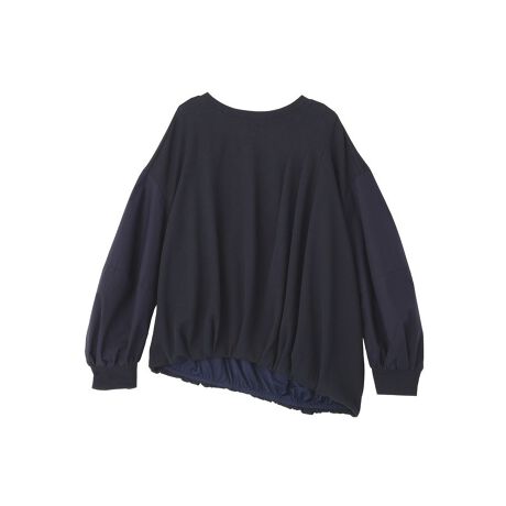 柔らかなカットソー生地とハリのある綿生地をドッキングさせた個性的なデザインです。