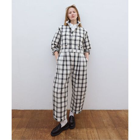 ・オンブレチェック柄の生地にワッシャー加工を施し、奥行きのある表情に仕上げたジャンプスーツ。