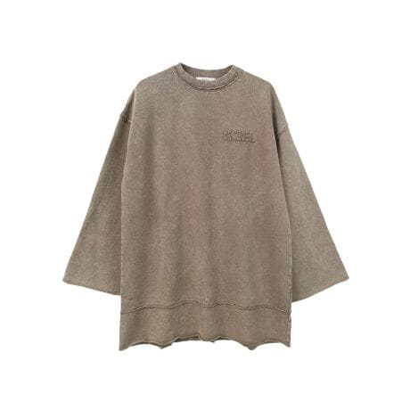 ダメージ加工や、切りっぱなしの仕様により、古着っぽくビンテージの雰囲気を出したスウェットトップス。
