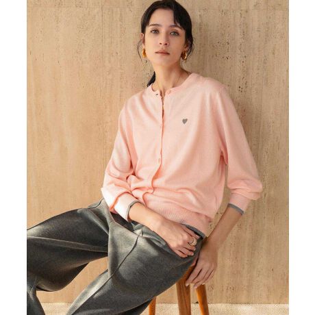 左胸にあしらったハート刺繍がポイントのクルーネックカーディガンです。