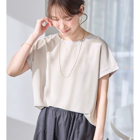 ・ブラウス生地を使用したTシャツ風デザインのTブラウスは、Tシャツとブラウスのいいとこどり!カジュアルな装いも品よく決まります。