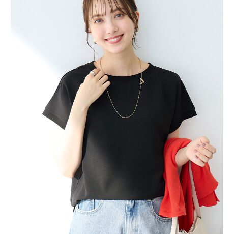 ・ブラウス生地を使用したTシャツ風デザインのTブラウスは、Tシャツとブラウスのいいとこどり!カジュアルな装いも品よく決まります。