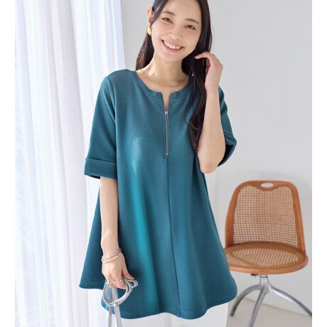 ひんやり&シワになりにくい エンボス素材Aラインチュニック