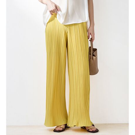 ・細ピッチのプリーツデザインが縦ラインを強調し、脚をすっきりと演出します。