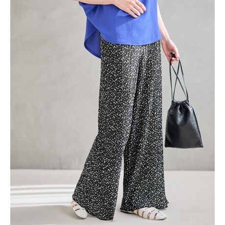 ・細ピッチのプリーツデザインが縦ラインを強調し、脚をすっきりと演出します。
