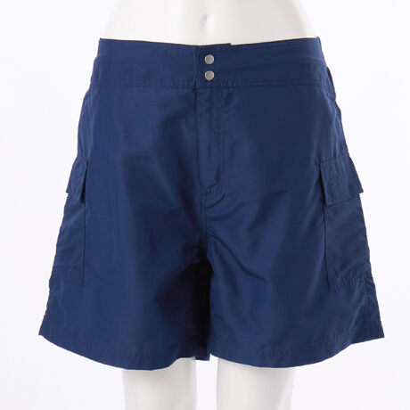 ポリエステルリップストップという強度の高い糸が織り込まれていて、ほつれにくく破れにくい避けても途中で止まる特徴がある生地を使用。前ファスナーあきでウエストはバックゴム仕様。着脱も楽で動きやすく、裾が広めのシルエットで太ももが細く見える効果が期待できます。マジックテープついたの蓋つきポケットで中のものが飛び出す心配もありません。ウエストはインスピンドルでサイズ調節可能。ポケットは水に入っても大丈夫な水抜き穴つき。スイムレギンスと合わせて水に入っても大丈夫。